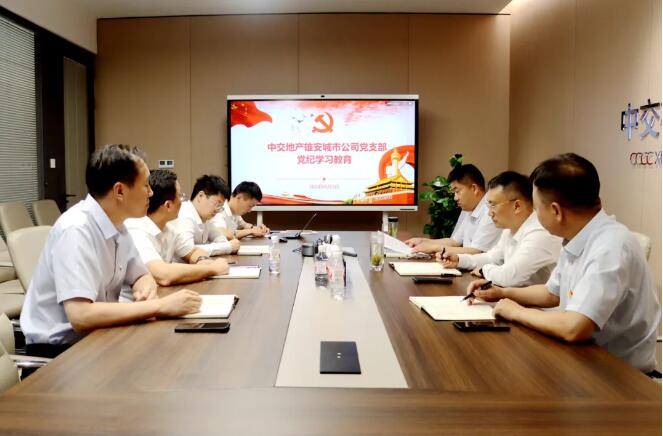 中交地产雄安城市公司党支部认真策划开展党纪学习教育,第一时间为全体党员整理习近平总书记关于党的纪律建设的重要讲话、购置学习读物,定期发送权威解读材料,形成学习党纪条例的浓厚氛围。党支部结合项目建设实际,在引导党员干部做好自学的基础上,适时组织集体学习,通过读原文、谈体会、明要求,推动全体党员干部学纪、知纪、明纪、守纪,校正思想和行动,切实将条例规定内化为言行准则。